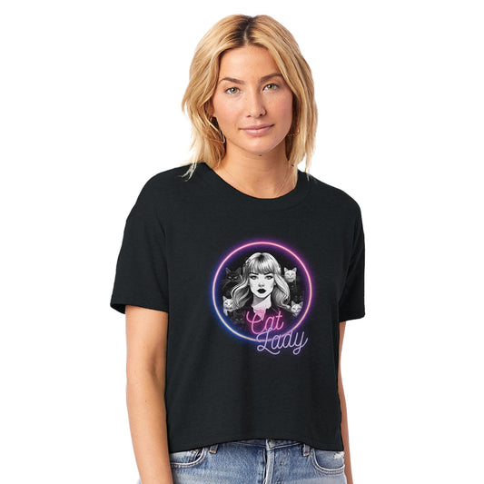 CAT LADY - NEON (Women's Cropped Crewneck T-Shirt)
