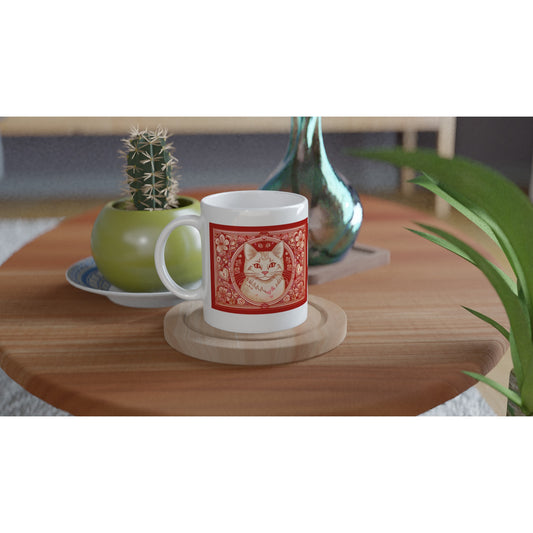 FLORAL BORDER CAT – 11oz White Ceramic Coffee Cup