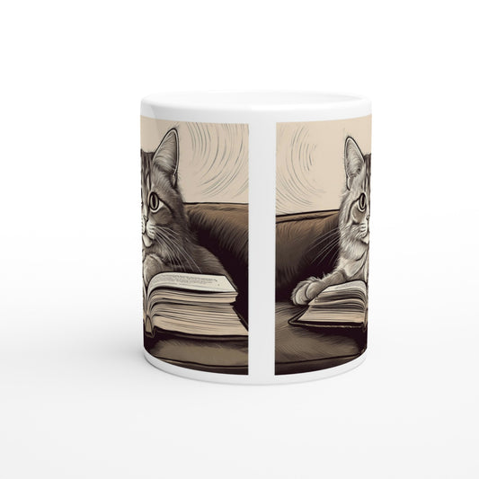 TABBY CAT READER Mug – 11oz Ceramic Coffee Cup