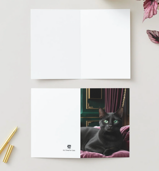 BLACK CAT GLAM Illustration Greeting Cards – Pack of 10 Folded Blank Cards and Envelopes