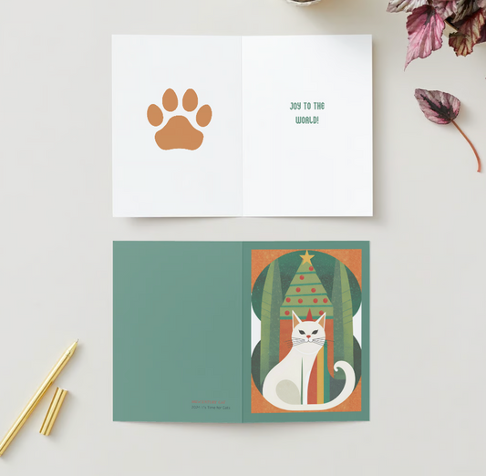 Celebrate the holidays with cat-themed greeting cards, purr-fect for your seasonal and special occasion wishes. Each card features unique designs for cat enthusiasts designed by cat enthusiasts. These cards are a fun and thoughtful way to share cheer with a feline twist! Each comes in a set of 10 eco-friendly folded 5x7" cards with solid white envelopes. Shop our designs for birthday, pet sympathy, Valentine's Day and more!