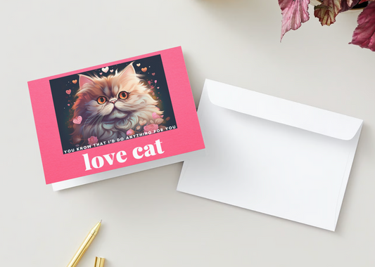 LOVE CAT CARDS with Hearts and Flowers - Pack of 10 Greeting Cards Valentine's Day (US & CA)