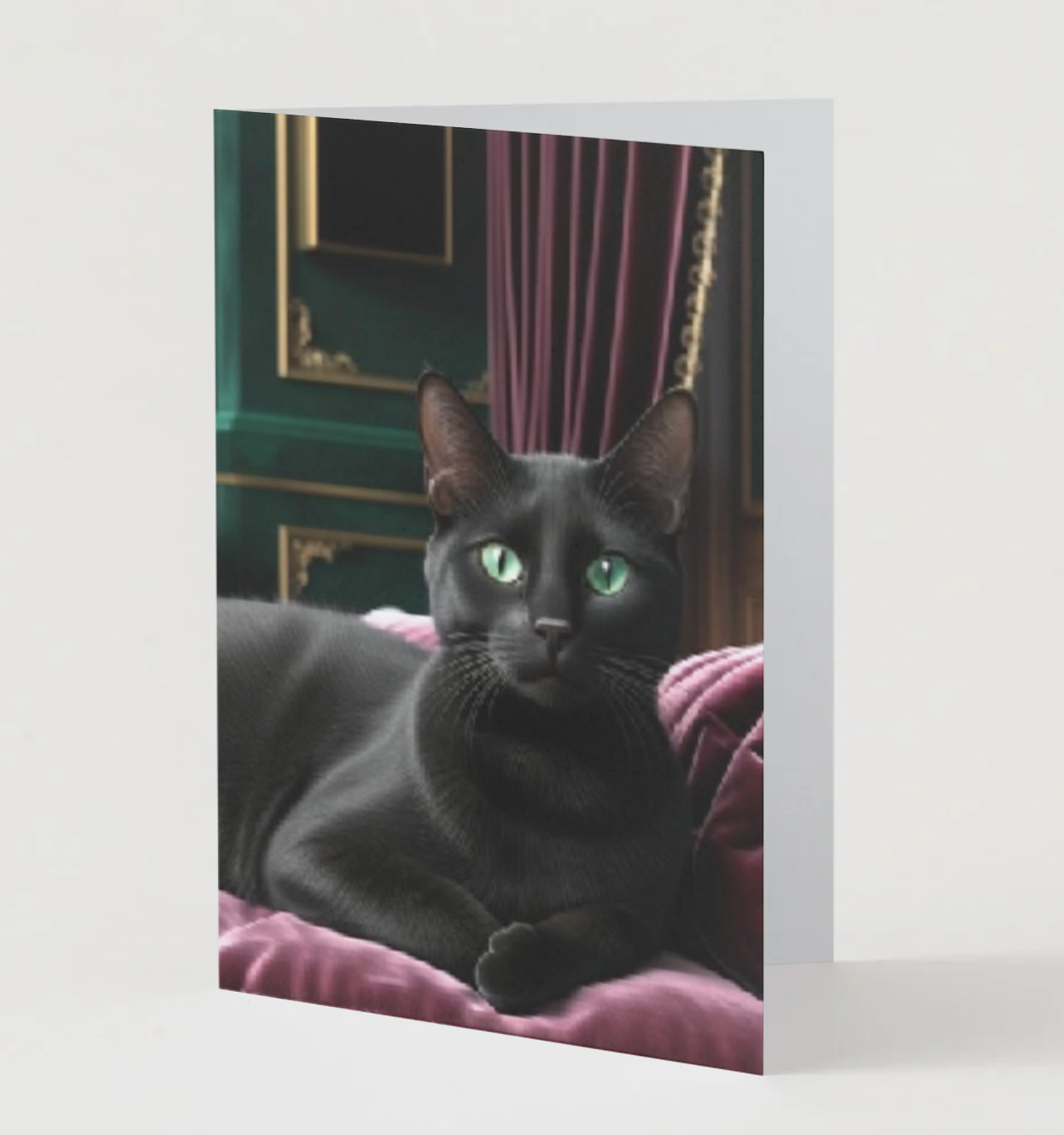 BLACK CAT GLAM Illustration Greeting Cards – Pack of 10 Folded Blank Cards and Envelopes