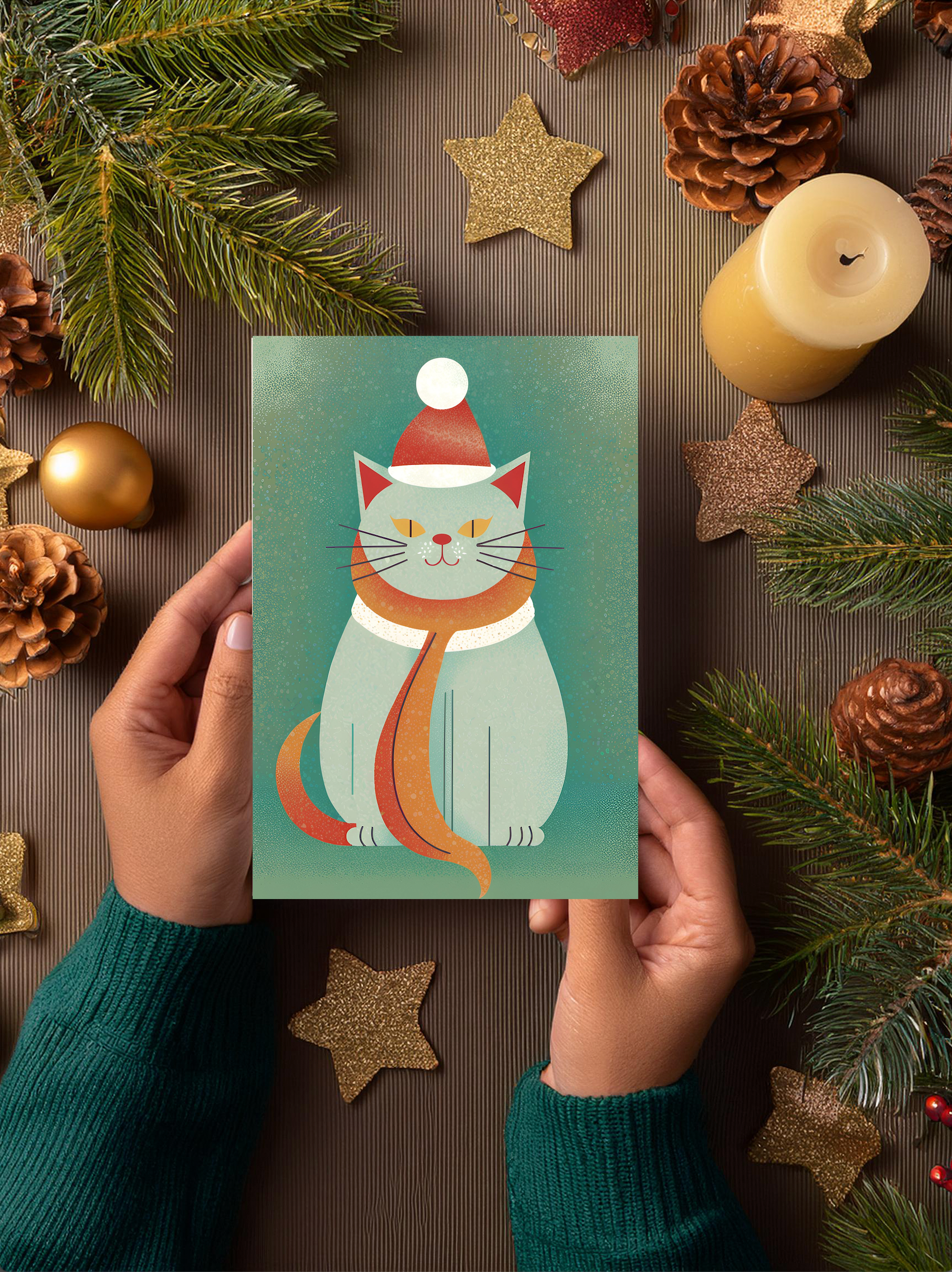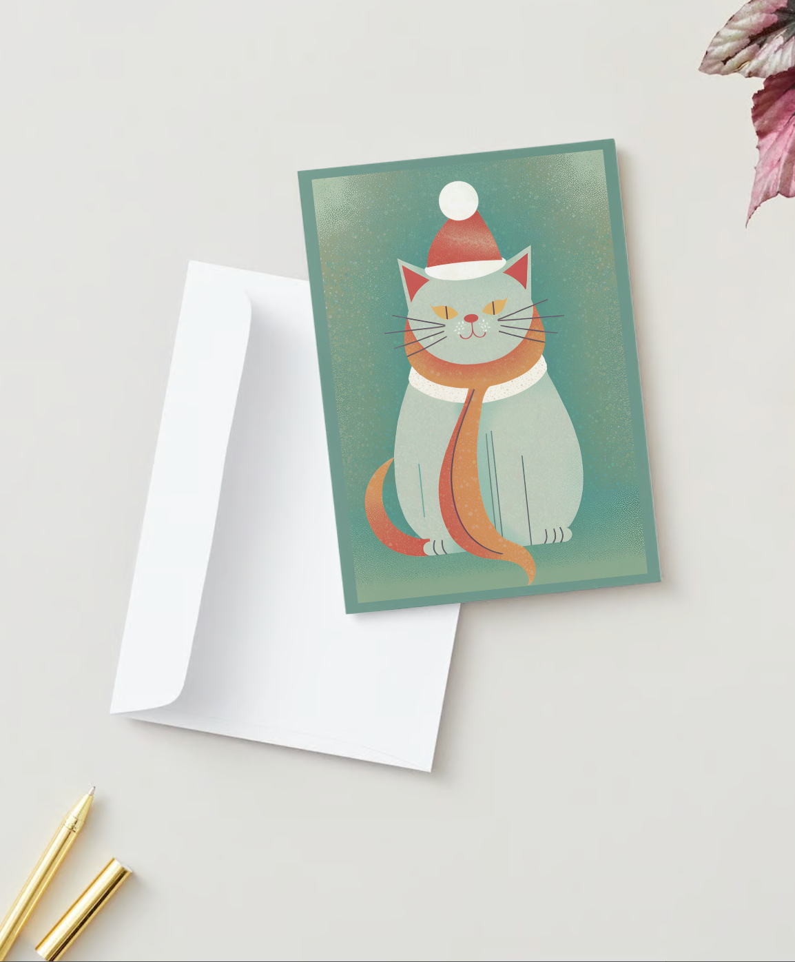 RETRO SCARF CAT Pack of 10 Christmas Greeting Cards (US & CA)