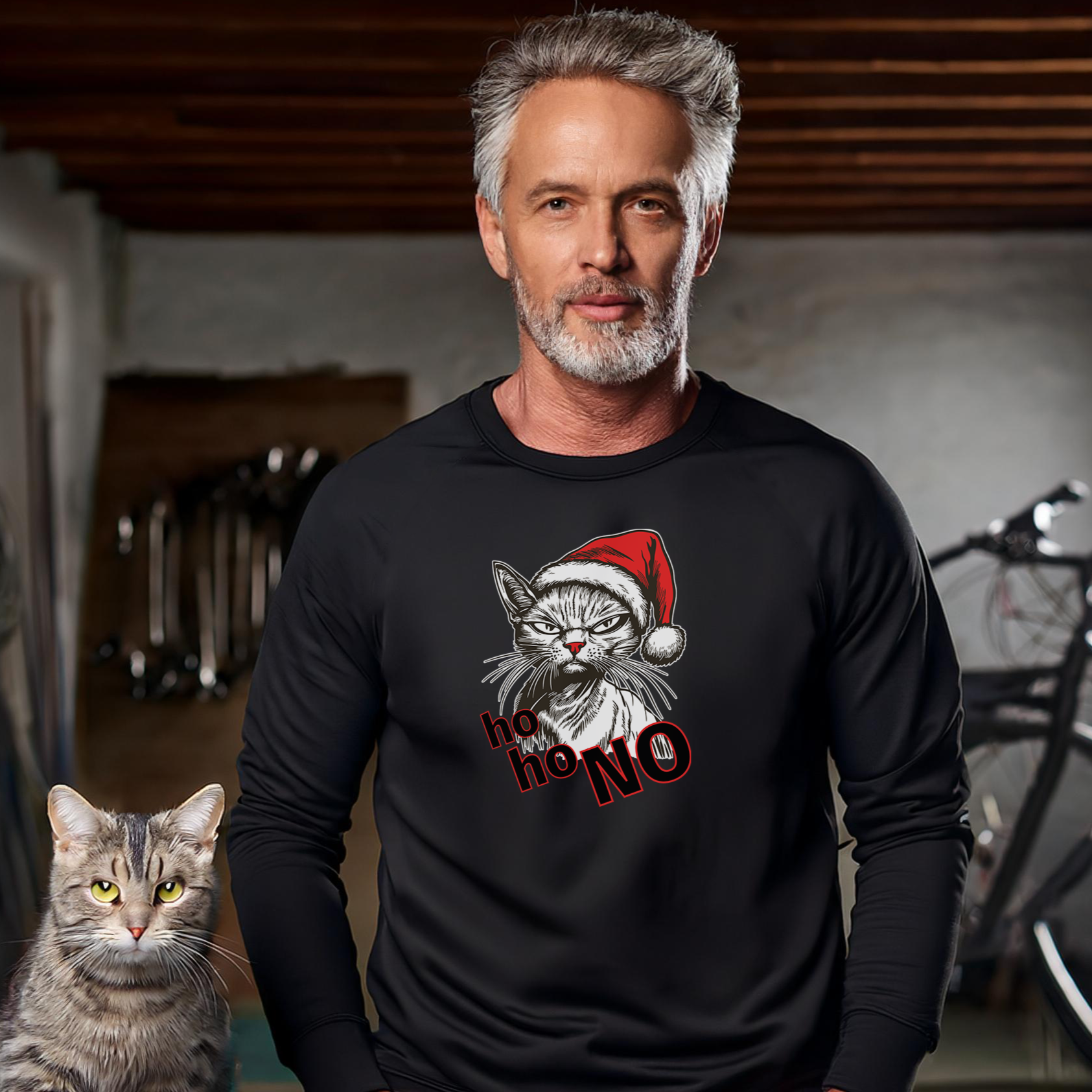Has someone been naughty or bad? Show your holiday spirit with this classic crewneck longsleeve sweatshirt with a playfully grumpy twist. Available in 4 colors and inclusive sizing. A great gift for quirky cat owners and cat enthusiasts who are not feeling so festive this Christmas or who know a rather feral and naughty cat.