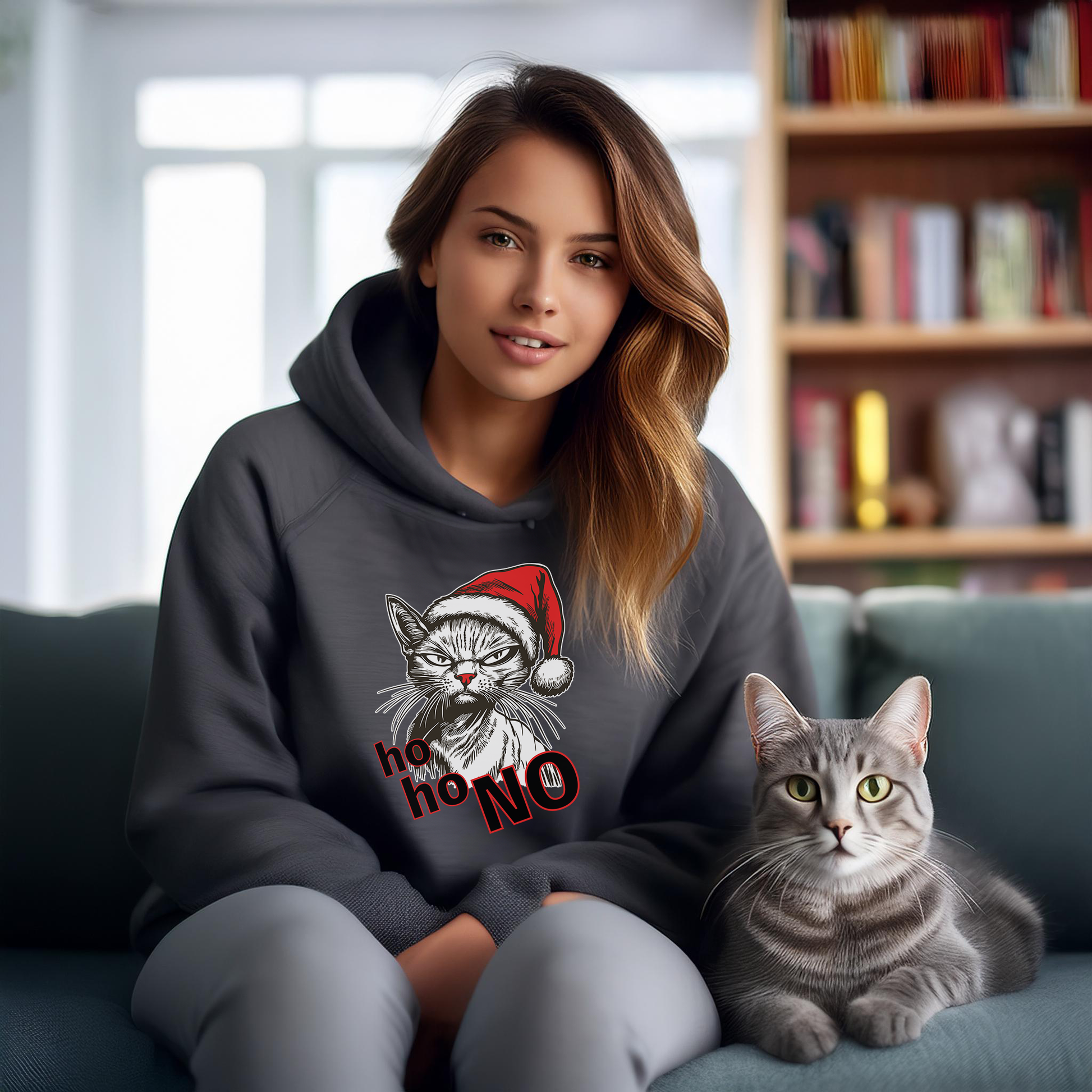 Some of us are maybe not feeling as cheery in mood this holiday! This comfy cotton/poly blend unisex hoodie sweatshirt is purr-fest for celebrating all season long. A great gift for cat lovers. Available in several colors and unisex, inclusive sizing. Designed for cat people by cat people.