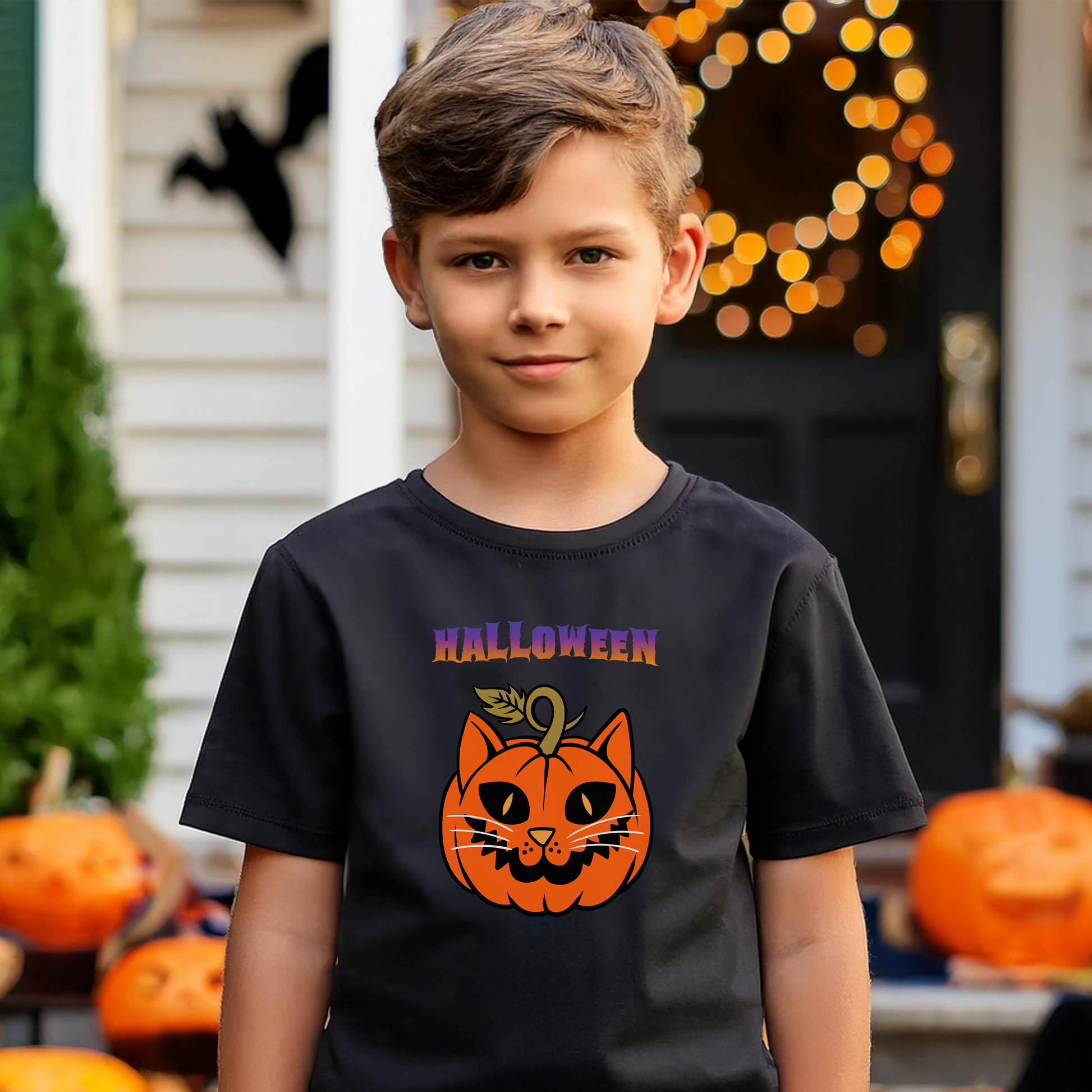 It's Halloween! Time to pick out and carve a pumpkin. We always include a cat themed jack o'lantern. Do you? Available in black and white with colored printing. Unisex. Classic comfort meets color with this soft crew neck t-shirts for kids. These 100% cotton shirts provide the perfect fit and the soft feel essential for everyday wear.