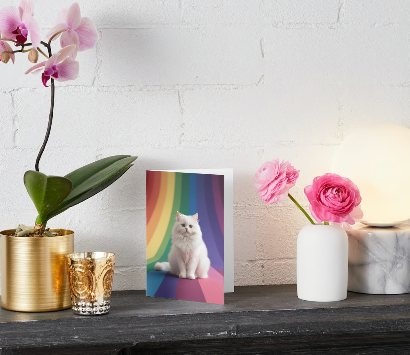Show your love and support during difficult times with our heartfelt Pack of 10 Sympathy Greeting Cards. Each card features a beautiful longhaired white cat perched on a vibrant rainbow, bringing a touch of warmth and comfort to your kind words. Inside, the message 'Thinking of You' offers solace and connection. Perfect for sending to friends and family going through tough times, these cards convey your heartfelt sentiments with style and grace. Each is crafted from premium, eco-friendly paper, ensuring your message is delivered with care. Make someone feel special with a thoughtful card – order your pack today and share a touch of kindness that speaks volumes. Whether for the loss of a pet, illness, or grief of any kind, the sweet cat and rainbow motif is a calming and gentle way to show you care.