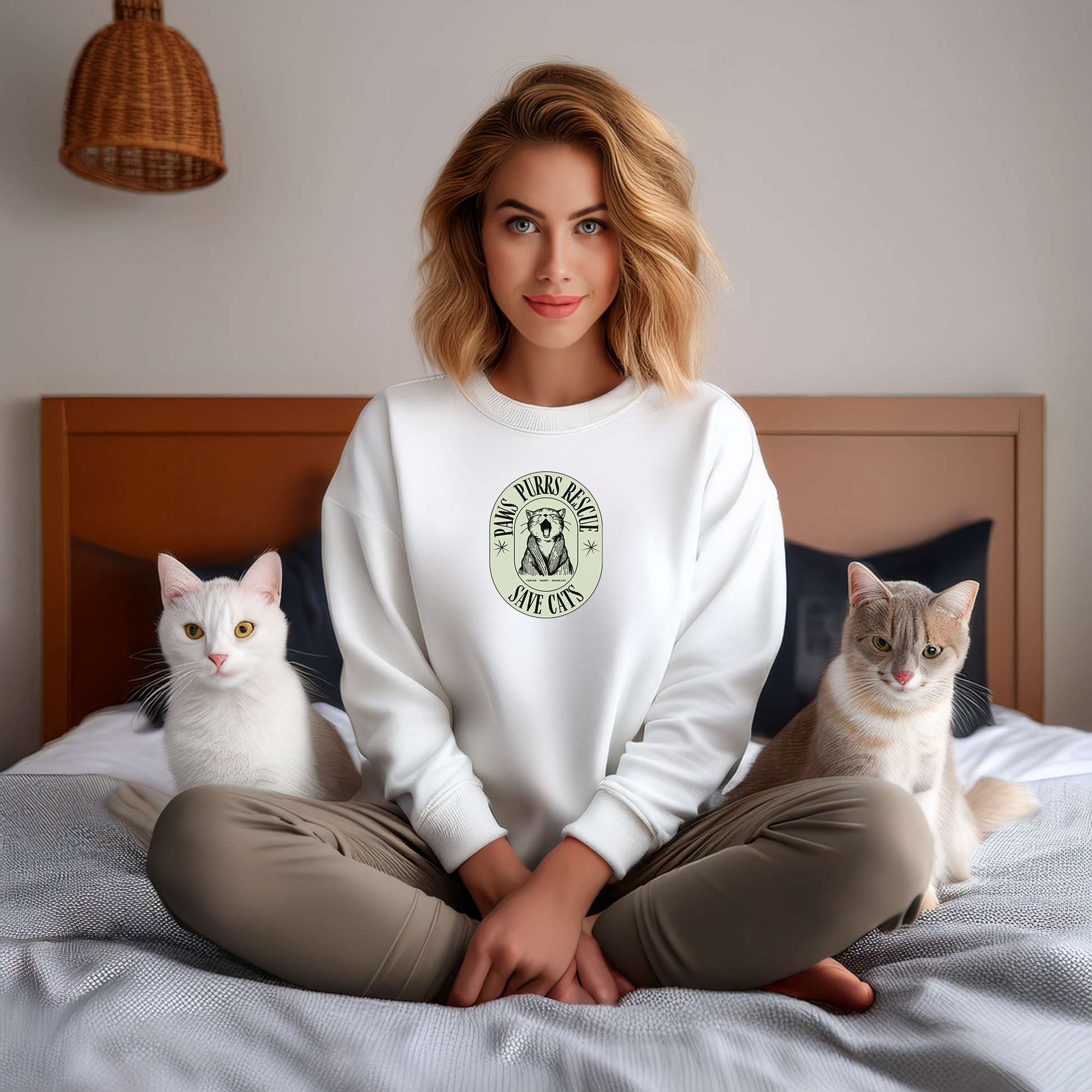 Show your love for feline friends with our Paws Purrs Rescue Save Cats Sweatshirt, featuring a charming cat at the center and a powerful message advocating for cat adoption. Perfect for cat lovers, this sweatshirt combines comfort with a cause.