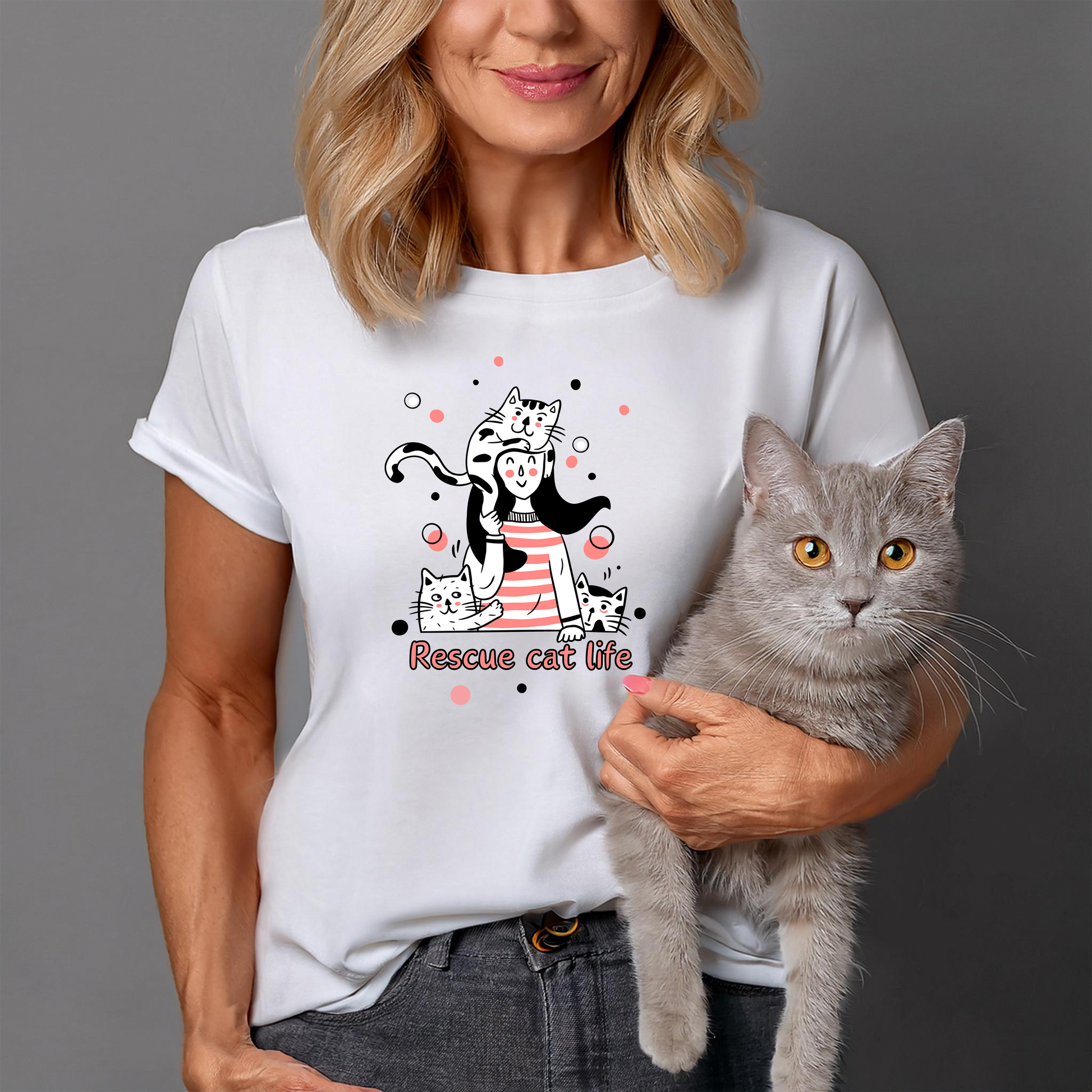 Who rescued who? An oversized unisex tee with a design showing your love for adopted and rescued kitties. Available in 3 colors and inclusive sizing.