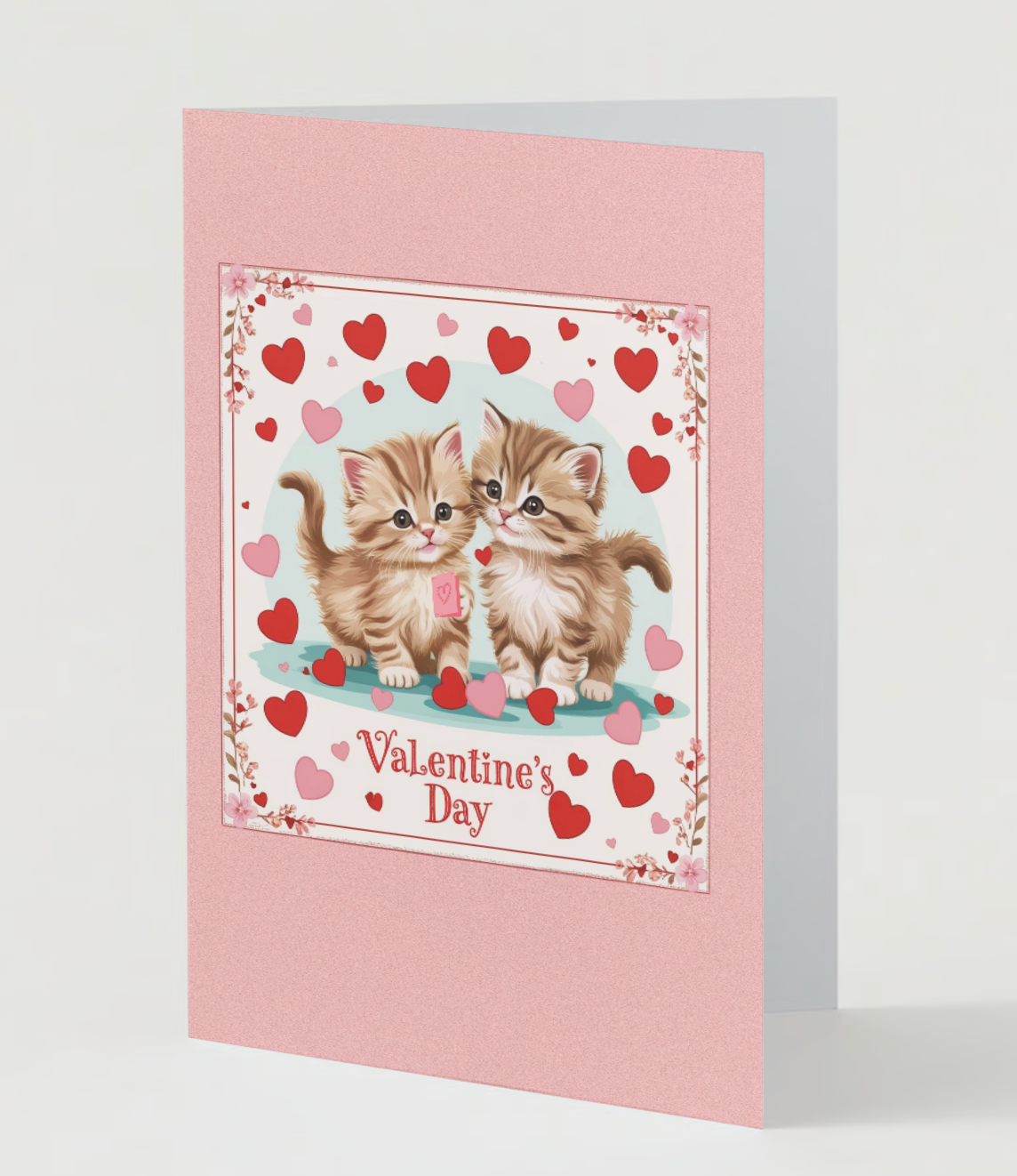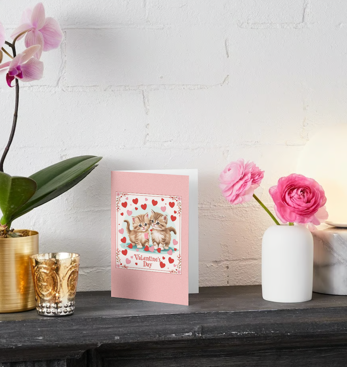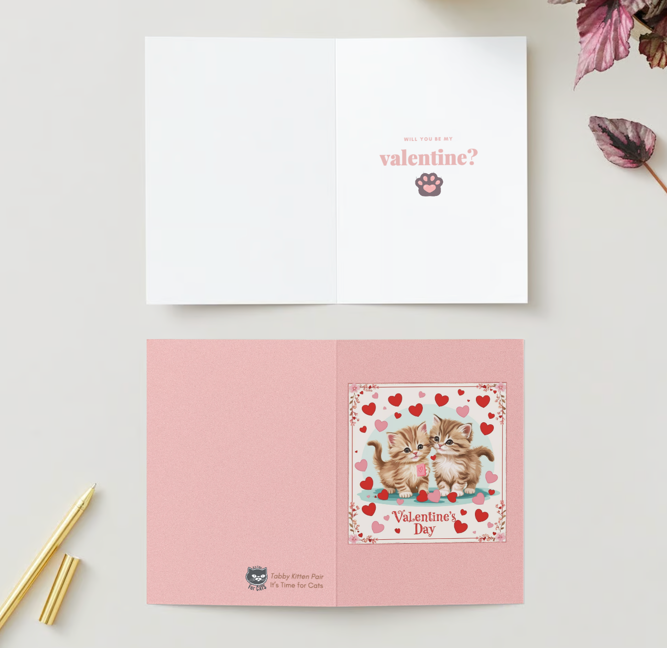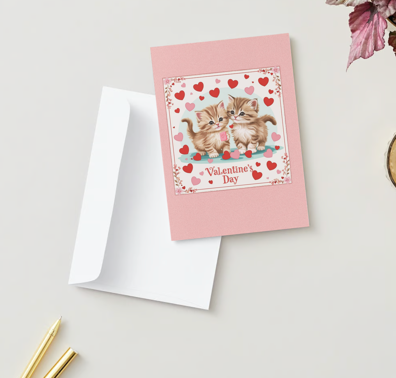 Spread the love this Valentine's Day with our adorable pack of 10 greeting cards featuring two sweet tabby kittens surrounded by hearts. Each card is designed to capture hearts and convey your warmest wishes, making them perfect for friends, family, or that special someone. Crafted from high-quality, eco-friendly paper. Whether you're celebrating love, friendship, or appreciation, these charming cards are the perfect way to share your feelings. Don't miss out on these unique greeting cards – order your pack today and brighten someone’s day!