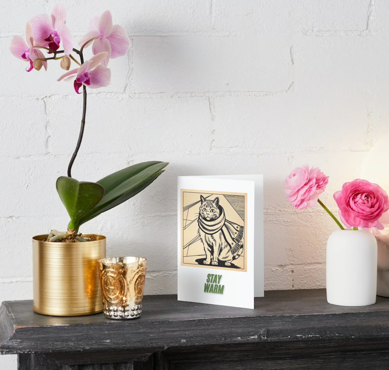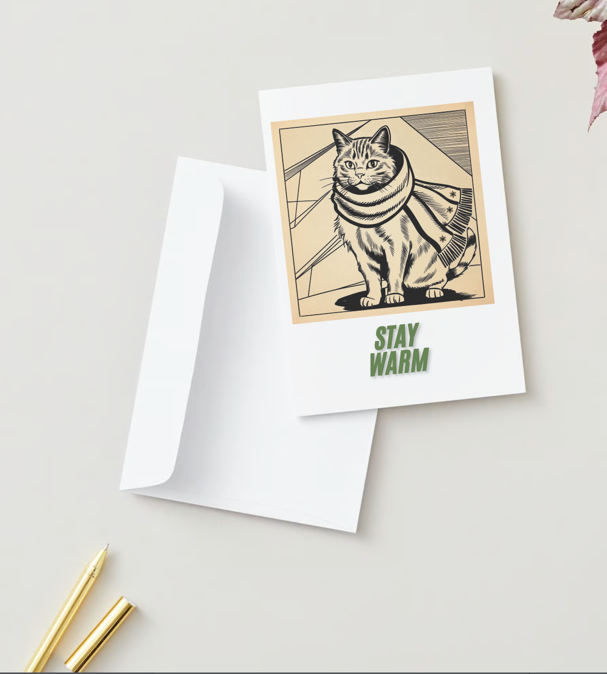 STAY WARM CAT Pack of 10 Holiday Greeting Cards (US & CA)