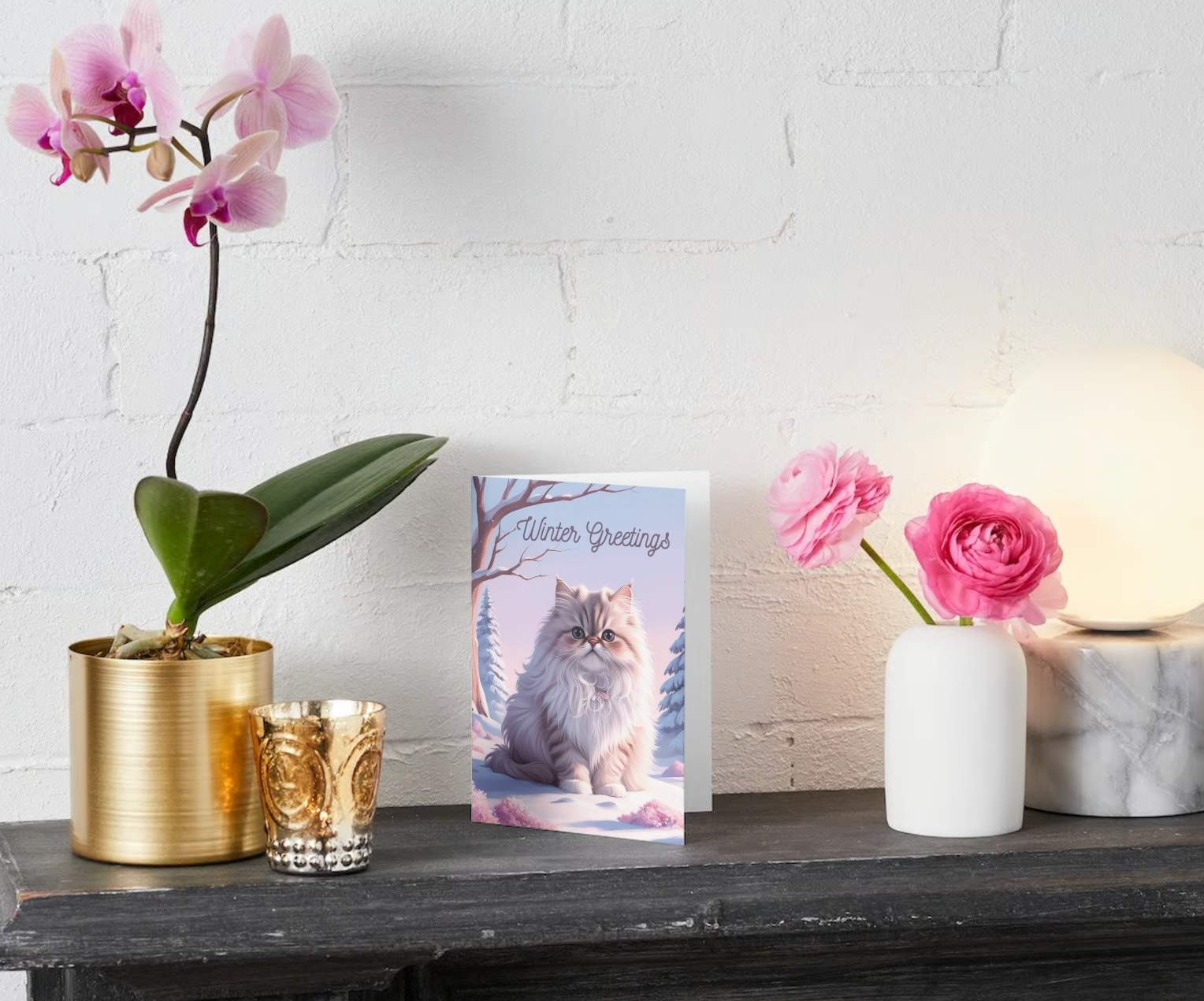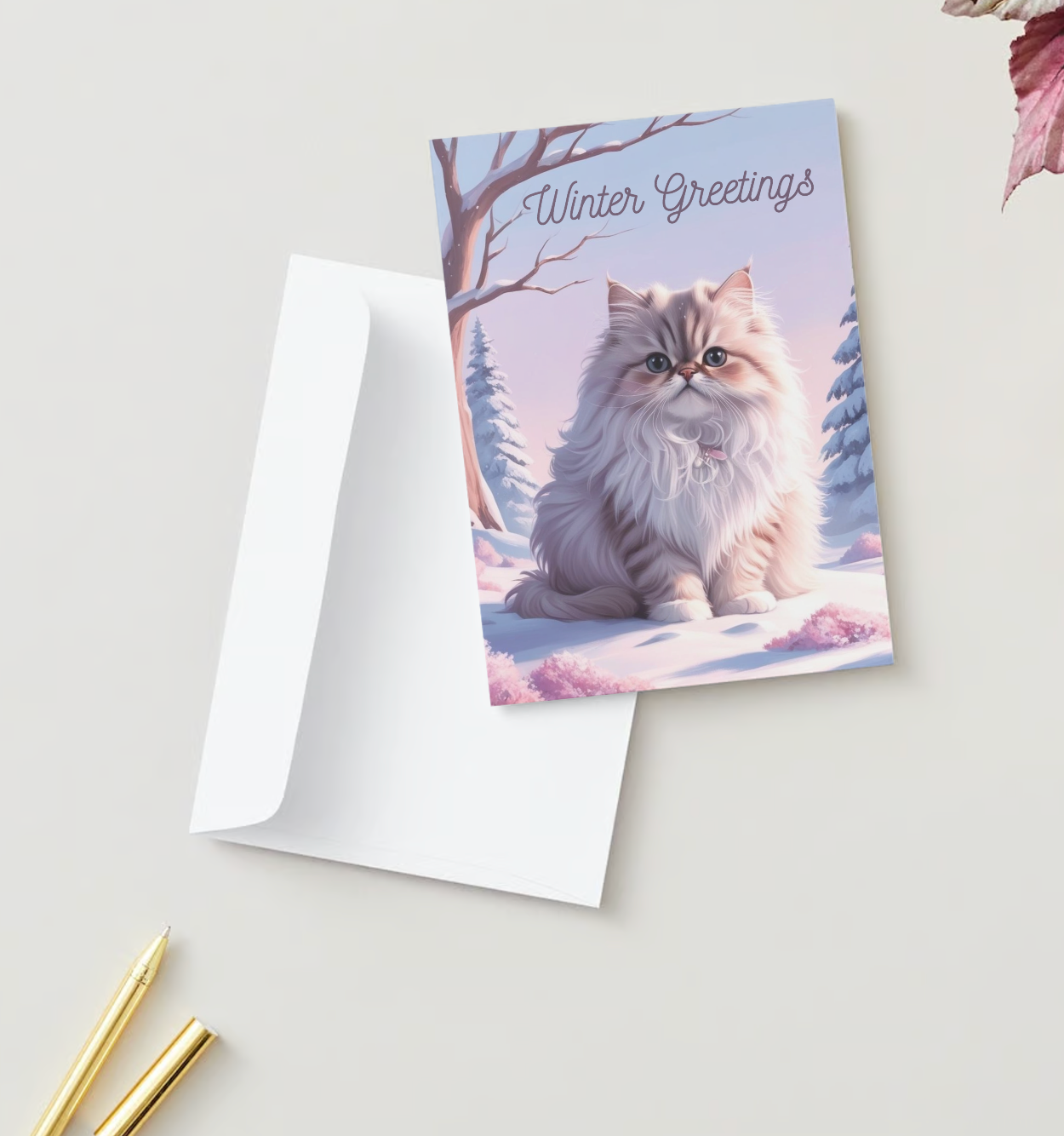 Capture the magic of winter with our exquisite pack of 10 greeting cards featuring a stunning longhaired cat set against a serene pastel snow scene. Perfect for sending warm wishes to cat lovers during the holiday season or any winter occasion, these cards are designed to convey heartfelt sentiments with elegance. Each card is made from eco-friendly, high-quality paper that ensures sustainability and durability. Whether you're sending a thank you, holiday greeting, or just a note to say hello in the new year, these cards will leave a lasting impression. Don’t miss out—order your pack today and spread the joy of winter!