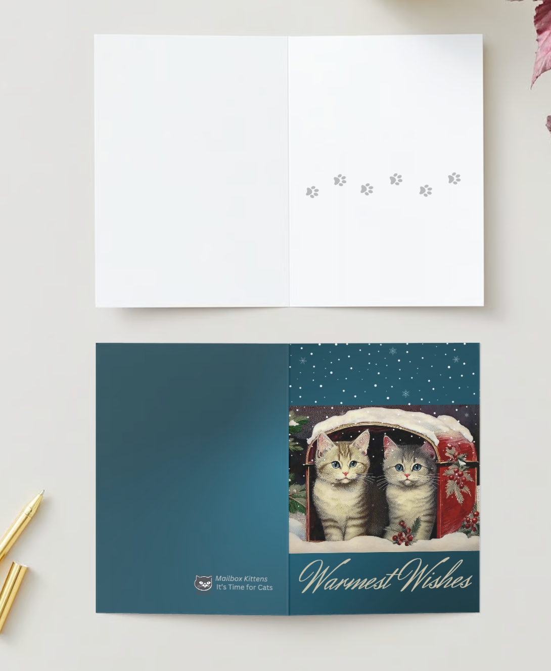 VINTAGE KITTEN MAILBOX Warmest Wishes Blank Greeting Cards - Pack of 10 (US & CA)