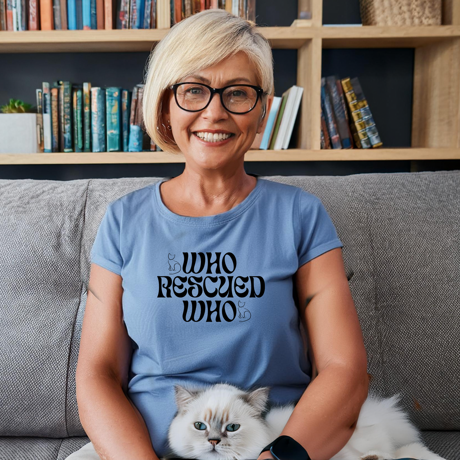 WHO RESCUED WHO Cat T-Shirt – Soft Unisex Tee with Cat Silhouettes